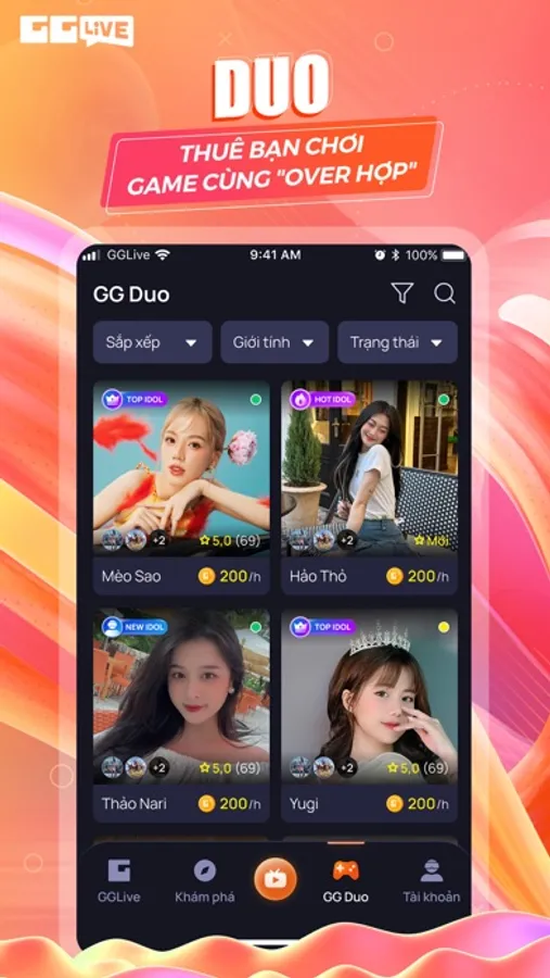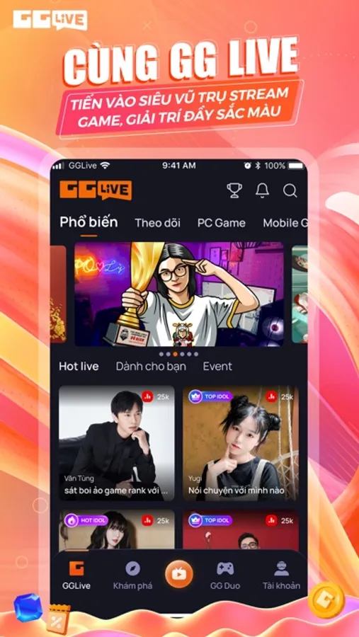 Sống tích cực hơn mỗi ngày cùng GG Live, tại sao không? Những streamer hài hước, những idol sở hữu khiếu nói chuyện “mặn hơn nước biển”,... - tất cả đều sẽ mang đến cho bạn những phút giây thư giãn tuyệt vời!