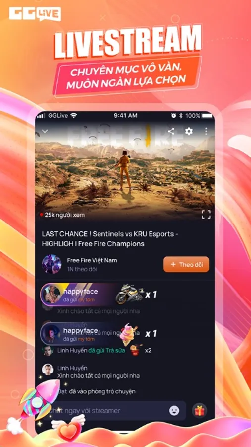Hãy để GG Live mang đến cho bạn những khoảnh khắc giải trí vui vẻ mỗi ngày qua các màn livestream game thú vị và hấp dẫn.