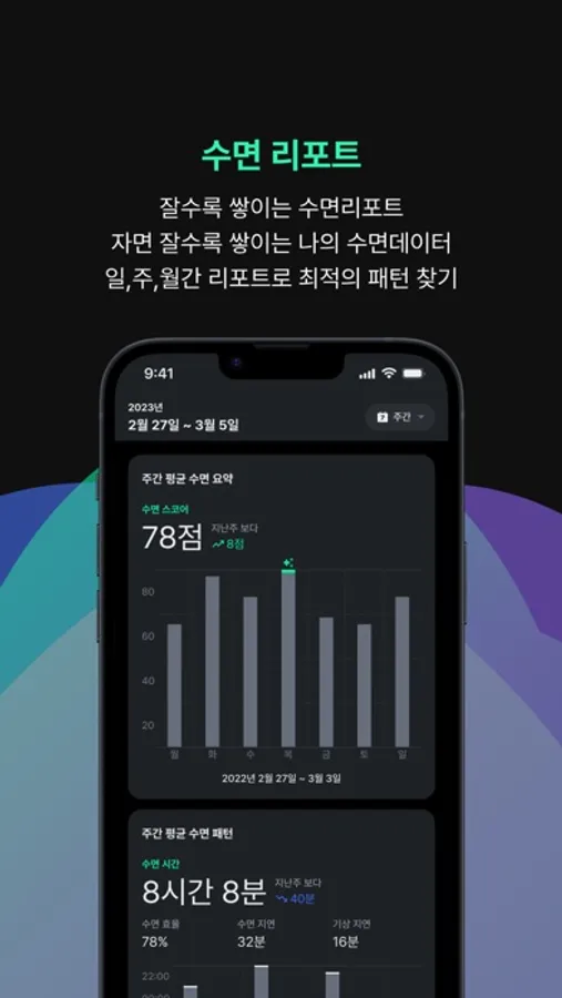 매일매일 나의 수면을 진단해주는 수면 레포트를 제공합니다.