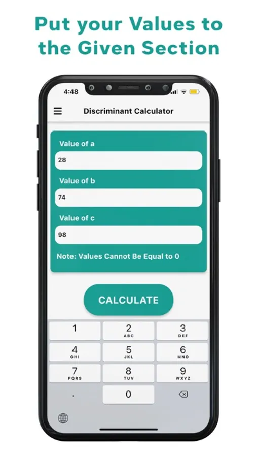 Give a try this Discriminant Calculator. Write values of three numbers into the empty boxes and find answers with solutions and steps to save a lot of your time from the manual calculation.