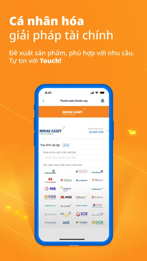 Touch được phát triển và quản lý bởi Công ty tài chính TNHH MTV Mirae Asset Việt Nam – Công ty tài chính tiêu dùng đột phá nhất Việt Nam năm 2019 được công nhận bởi Tạp chí Global Brands Magazine (GBM).