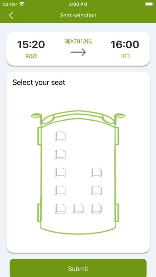 2、预定所需时间的巴士座位:员工在应用程序内可看到巴士座位的预定情况;