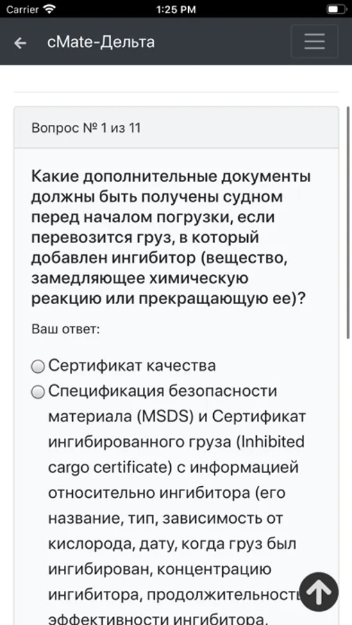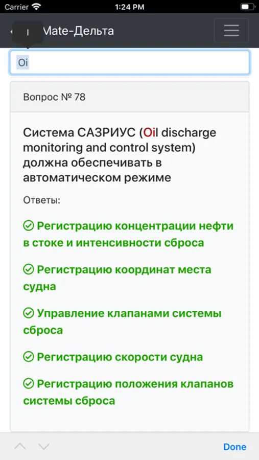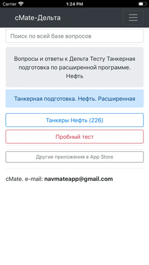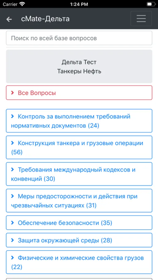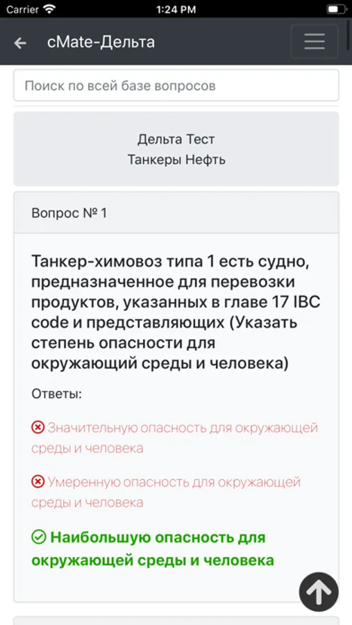 Приложение предназначено для проверки знаний членов экипажей морских судов. Специалистов по проведению грузовых операций на Нефтеналивных танкерах с расширенной подготовкой