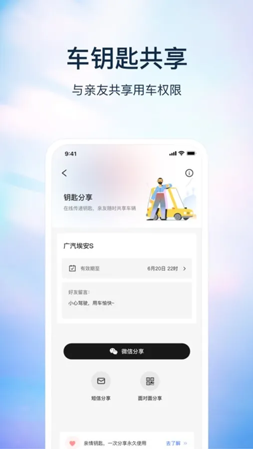 同时还可以生成多把钥匙分享给亲友,共享用车权限。