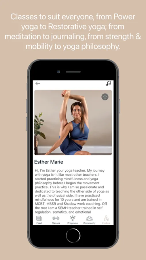 Join the EMY online global community to deepen your practice on and off the mat. Esther is an expert in using mindful movement and mindfulness to calm and strengthen both mind and body to optimise physical, mental and emotional health.