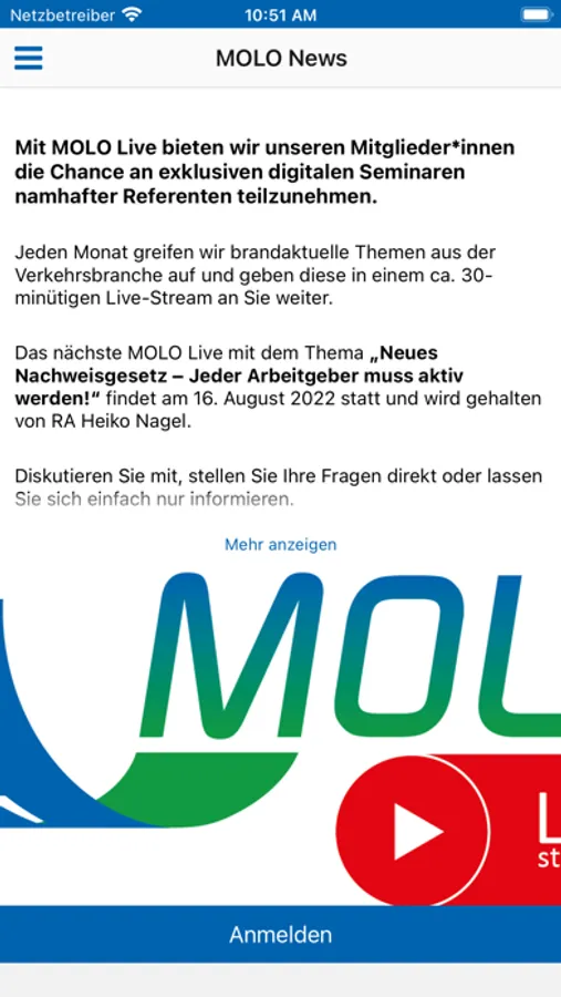 Hier erhalten Sie wichtige News zur Verkehrsbranche und den Zugriff auf interne Dokumente. Ebenso können sich über aktuelle Entwicklungen austauschen und sich mit anderen Mitgliedern vernetzen. Nehmen Sie den MOLO e.V. immer mit sich und erhalten so jederzeit Zugriff auf unser Netzwerk.