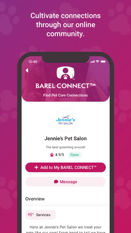 The future of pet care is here! BAREL™ is a safe and simple way to meet your pet care needs through a single app.