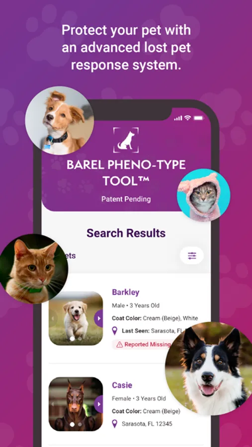 • Report your pet as lost and receive real-time updates on their status from any device.