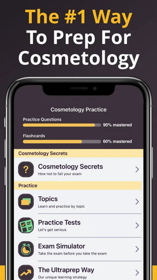 5000+ exam-like questions, 1000+ flashcards, over a dozen practice tests and real-life scenarios make Ultraprep the leading Cosmetology app on the market today.