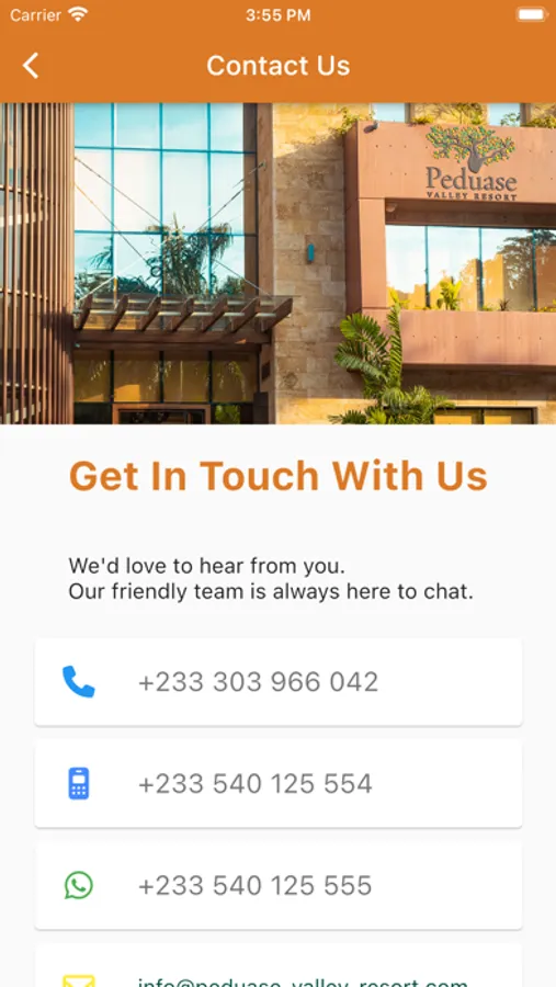 The Peduase Valley Resort app brings all our services to your finger tips. Book reservations, updated rooms availability, offers and promotions are all available in the app. Book rooms, place calls to all our outlets, get a better view of all our facilities, all directly from the app.