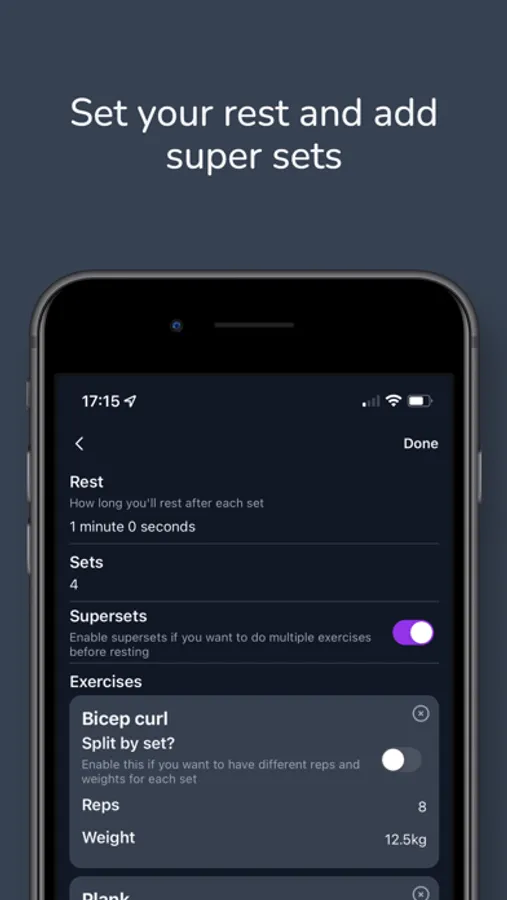 Stryde is a super flexible workout planner, powered by AI! Create your own workouts (including rest periods, supersets and more!), or let the Stryde AI do it for you.