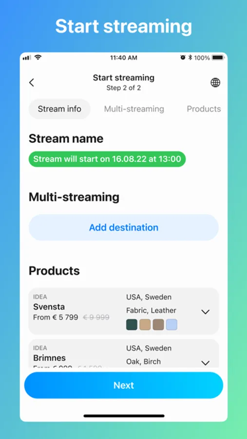 Need to make new sales channels in retail? Give this app to your sales managers or sales consultant, let them stream from anywhere with your goods.