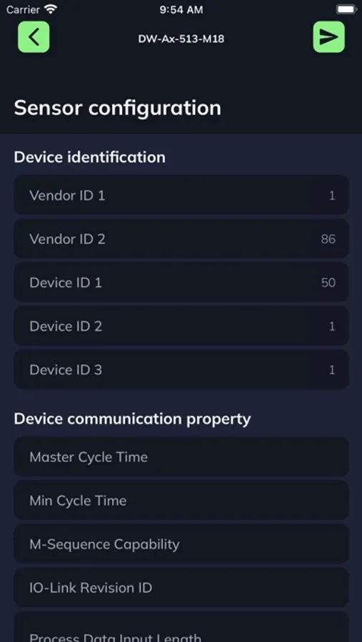 The PocketCodr app allows you to connect to the PocketCodr device, to configure any IO-Link sensor attached to it.