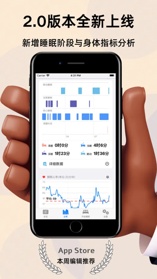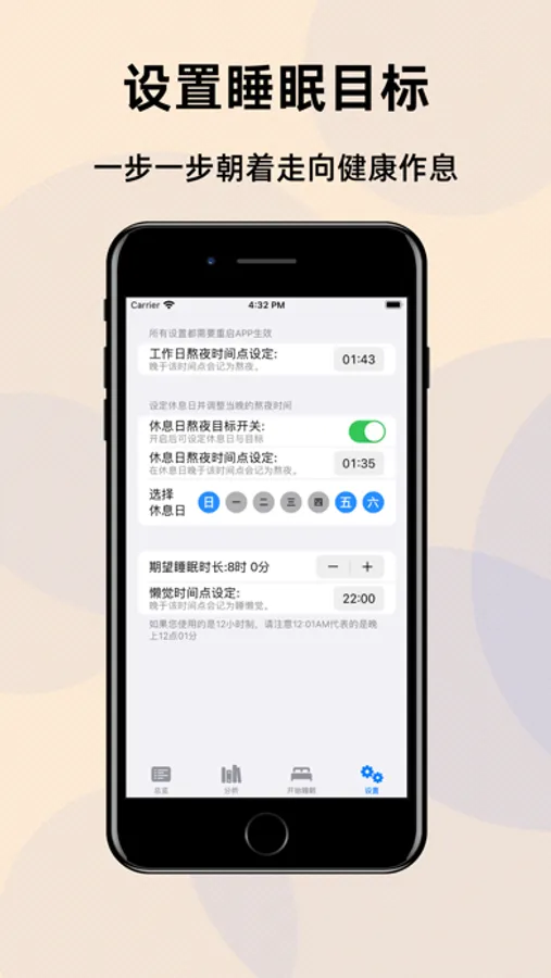 除了各种图表以及睡眠记录功能,如果您设置了提醒,StaySleep还可以在即将熬夜和即将午睡前提醒您的作息,也可以在合适的时候,提醒您及时关注前一天的睡眠数据与图表。