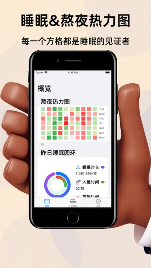 让StaySleep来帮您吧!它是一款简洁的熬夜热力图与睡眠记录App,可以让您直观的探索自己的睡眠与熬夜情况。