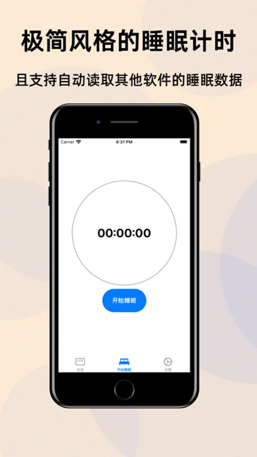 如果您没有其他任何可用的外设或者应用,StaySleep也自带一个十分简洁的睡眠计时器。它可以在排除外界干扰的同时,也可以帮助您手动记录入睡与起床时间并永久储存到设备中。您所需要做的,仅仅只是在睡前和起床后点点手指即可。此外,StaySleep自带的睡眠分析与可视化功能也不需要连接网络,您不必担心您的数据被我们泄露。
