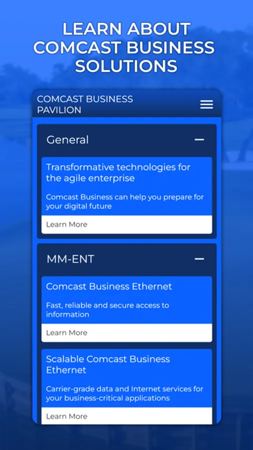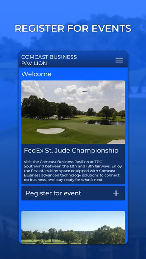 The Comcast Business Pavilion mobile app is your key to the Comcast Business Pavilion at select PGA TOUR events. Register to enjoy the first-of-its-kind space equipped with Comcast Business advanced technology solutions to connect, do business, and stay ready for what’s next.