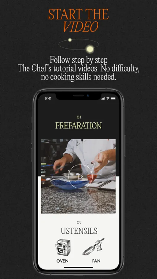 The Chef’s tutorial videos. No difficulty, no cooking skills needed.