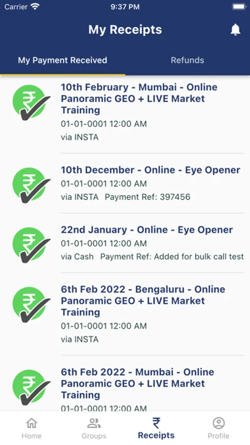• Students payment history and receipts