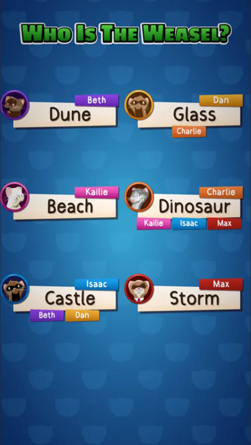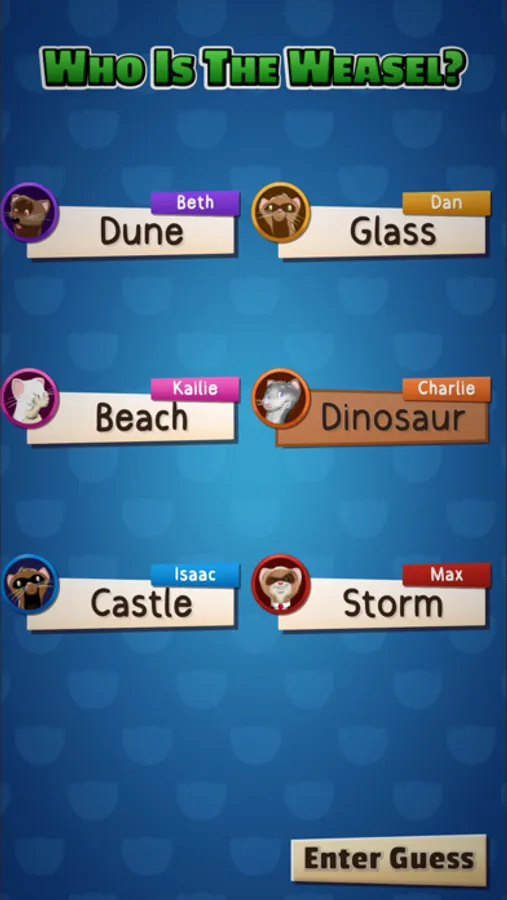 After the clues are revealed, a timer will start and players will study the submitted clues. All players have until the timer expires to select the name of the player they think is the Weasel. Anyone who thinks they’re the Weasel should select their own name and then guess the Ferrets’ word.