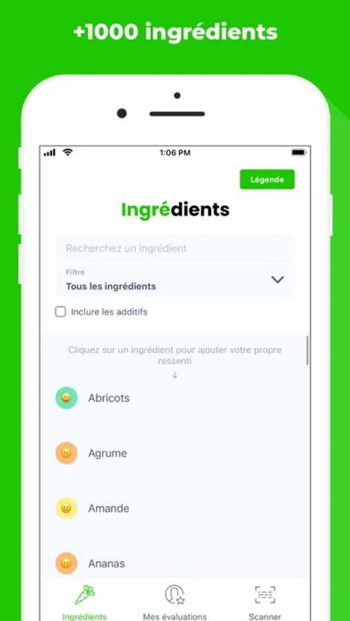 L'application Histamine intolérance va vous permettre de rechercher vos ingrédients parmi une liste de plus de 1000 ingrédients.