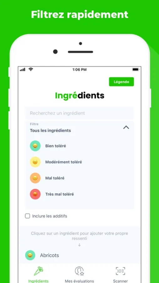Retrouvez plus de 1000 ingrédients avec plusieurs niveau d'intolérance pour chaque ingrédient. Utilisez la fonction de recherche pour retrouver les ingrédients en quelques secondes.