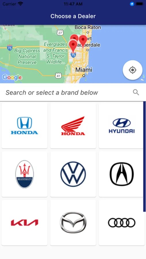 The Rick Case Automotive Group offers a wide variety of automotive brands: Acura, Audi, Alfa Romeo, E-Z-Go, FIAT, Genesis, Honda Automobiles & Motorcycles, Hyundai, Kia, Maserati, Mazda, and Volkswagen. Including the World's Largest Honda, Hyundai, Kia, and Volkswagen dealerships located in Broward County. These giant dealerships stand out as you drive along I-75 in West Broward County. The Honda dealership stands six stories high and is 650,000 sq. ft.; Volkswagen is eight stories high and 328,000 sq. ft.; KIA is six stories high and is 268,000 sq. ft. The Rick Case Automotive Group's national headquarters are located at 14500 West Sunrise Blvd. in Sunrise, Florida.