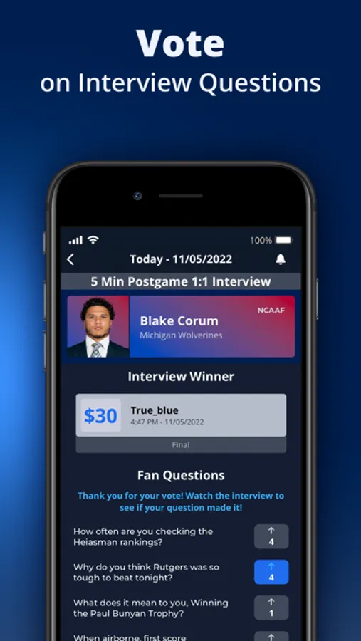 - Whether a fan's FanBreakdown or their bid, fans will get to interview athletes LIVE!