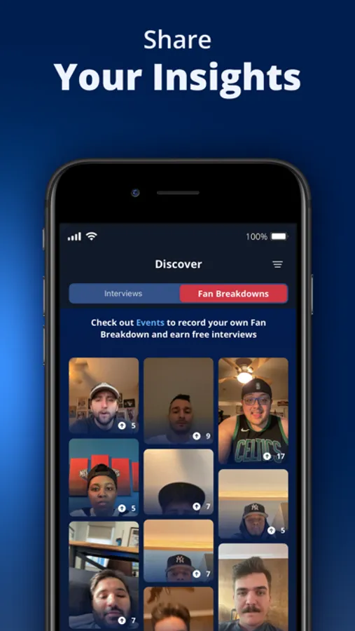 Download our sports app for free or subscribe for exclusive real-time access to sports content you can’t get anywhere else! More of an observer? Vote on your favorite FansView Fan Breakdowns and see them win the primetime interview. Want more skin in the game? Subscribe and gain access to exclusive interview content, watch and interact with content in real-time, submit Fan Breakdowns for a chance to win, and more.