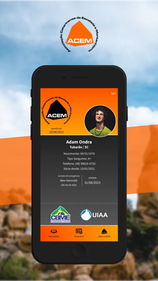App para associados da associação catarinense de escalada e montanhismo, carteira de associado digital, informações sobre vias e setores de escalada, divulgação de eventos e informações sobre a escalada em Santa Catarina.