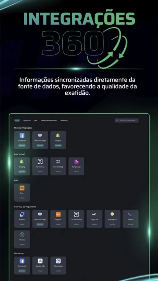 Com a plataforma você ganha mais inteligência pelo cruzamento de dados, ganha tempo por ter tudo sincronizado e automático sem a necessidade de perder tempo construindo planilhas e BI.