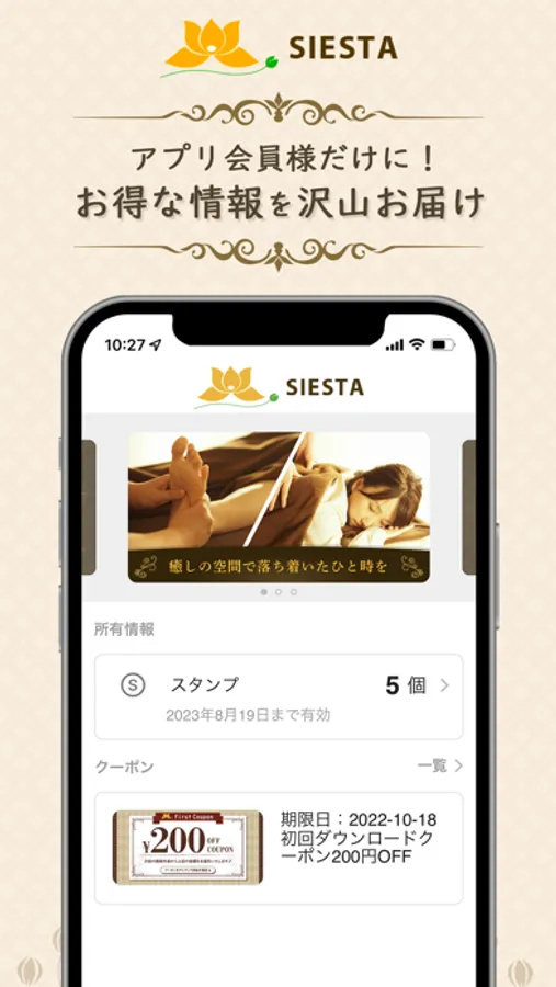 アプリ限定のダウンロード特典などお得なクーポンも定期的に配信します。