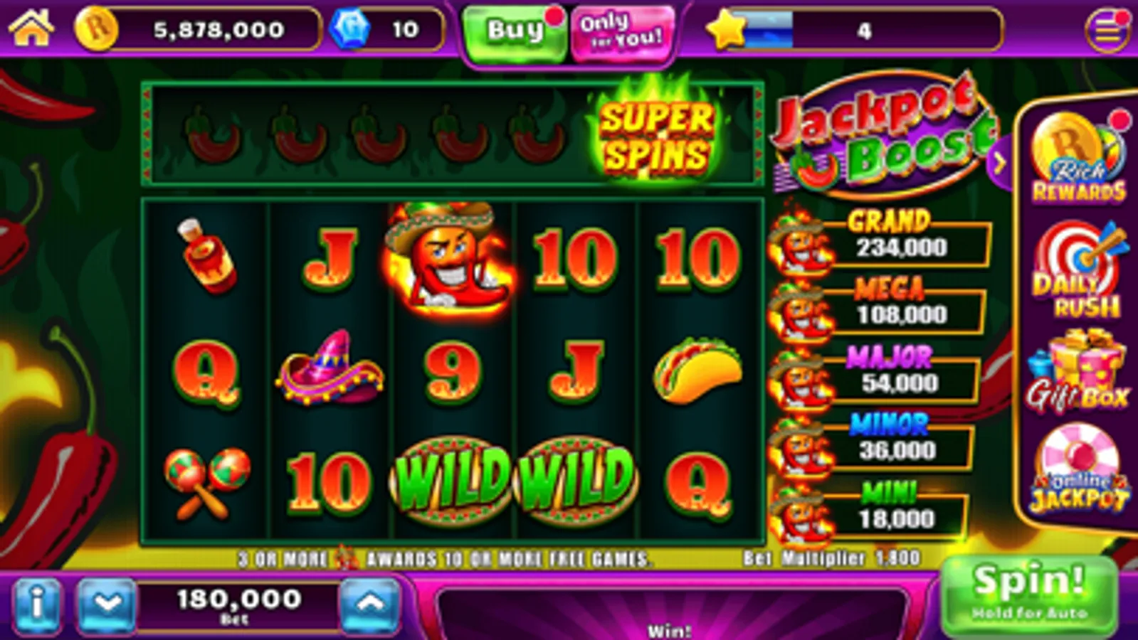 -Enjoy your super winnings from jackpot explosion and super spins every day!