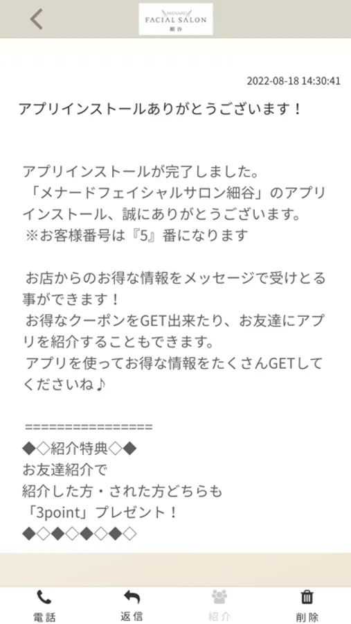 メナード細谷のアプリをSNSを通じてお友達に紹介する事ができます。