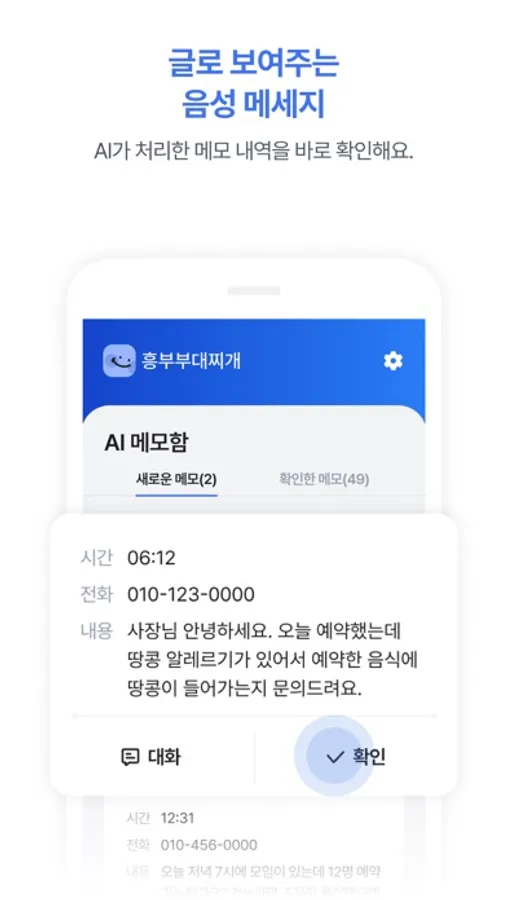 - 매장 전화가 통화 중이거나 받지 못해도 고객 문의사항을 AI가 글자로 받아 적어 앱으로 전달