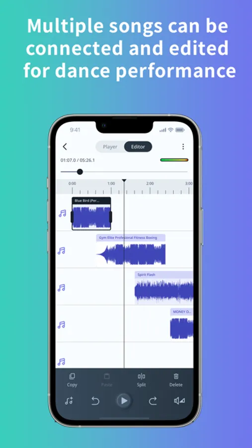 Edited tracks can be played back on the player screen without exporting, and additional edits can be made by immediately returning to the music editing screen. The ability to seamlessly switch between the player and editing screens at the touch of a button allows for efficient choreography creation and dance practice.
