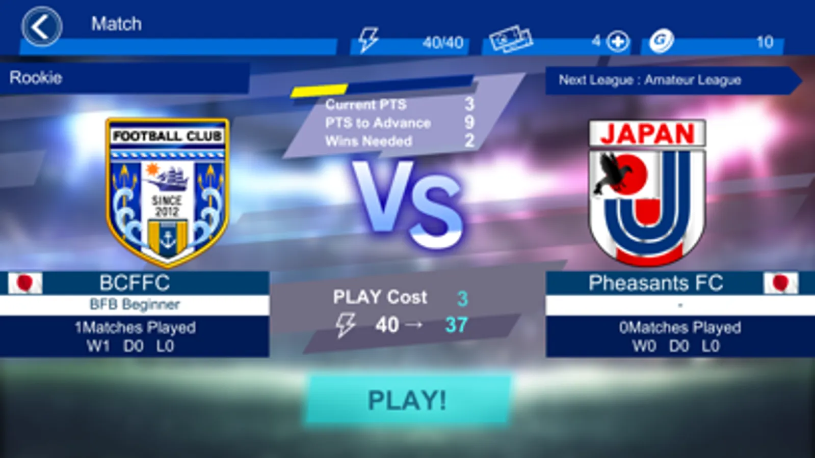 - Single player mode: play matches to earn points and get promoted to top-tier leagues.