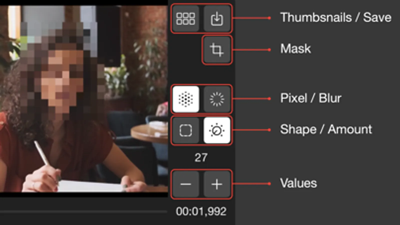 Hide portions of your video (faces, bodies or objects) with blur/pixelated effects quickly and easily.