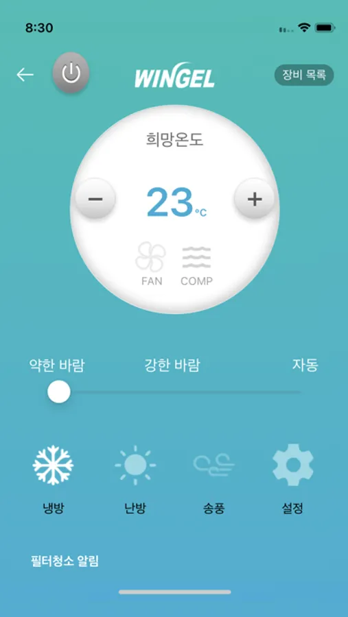 필터청소시기를 알려주어 에어컨 관리에 효율적입니다.