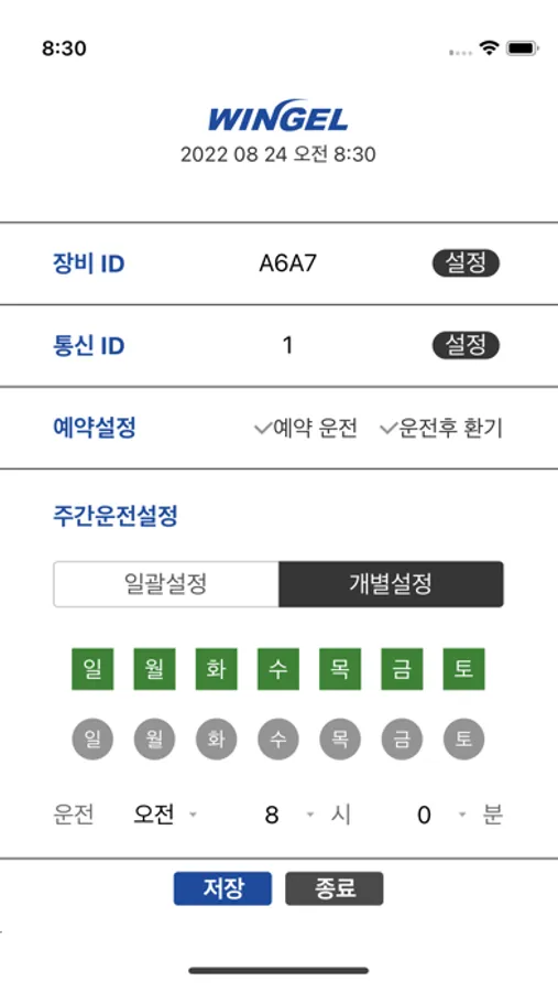 WINGEL PW2를 통해서 엘리베이터 에어컨의 온도, 바람의 종류를 변경 할 수 있으며, 예약 기능을 통해서 동작을 자동으로 제어하며, 비밀번호 설정이 가능합니다.