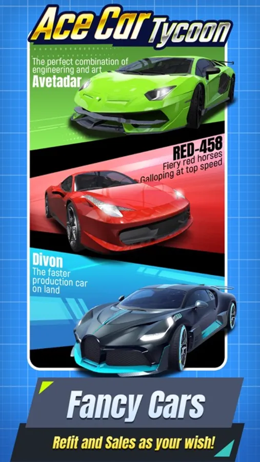 As an Ace Car Tycoon, you need to be able to buy cars, repair cars, sell cars, of course refit cars, and sometimes participate in car races to increase your popularity.