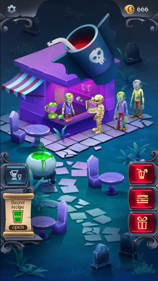 Immerse yourself in the dark and bewitching atmosphere of the world of monsters, zombies and vampires. All these creatures are also not averse to having a bite, and you're the one who has to manage the bar, which they regularly visit. Prepare food and drinks, complete quests and play mini-games: scary fun!