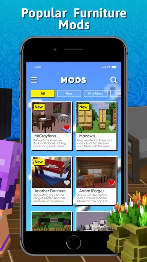 Furniture Mods for Minecraft app lets you quickly download and set up a huge selection of furnishings and accessories for your preferred game. For your internal and outside environments, this application provides furniture and decor alternatives. It allows you to create the home of your dreams. Create your ideal kitchen, living room, bedroom, garden, bathroom, and office. Make your home more interesting by redecorating. Try out various furniture finishes and decor ideas whichever you like.