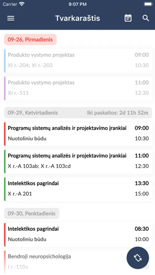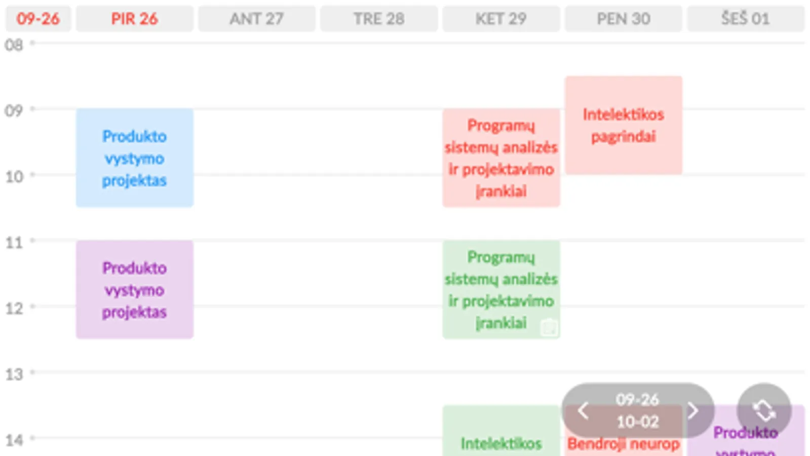 The KTU schedule app is a convenient alternative to the schedule available in the KTU information system.
