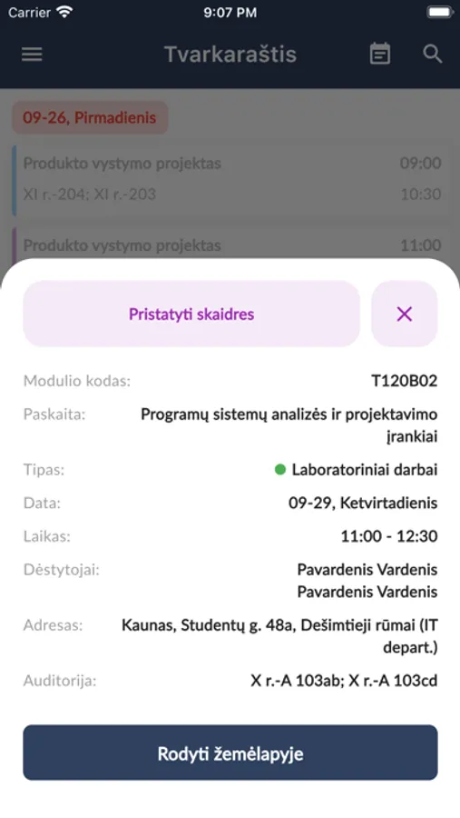 - Tikslios paskaitos vietos rodymas žemėlapyje