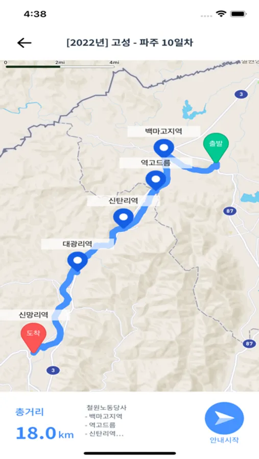 DMZ 통일걷기행사 경로를 안내하는 도보길안내 앱입니다.