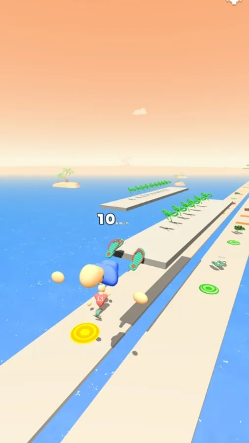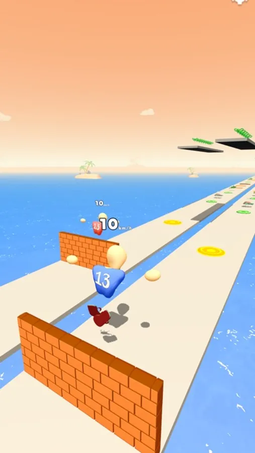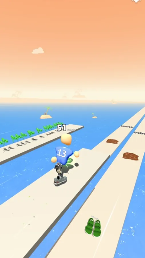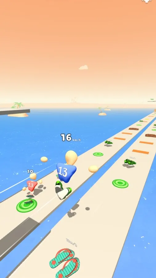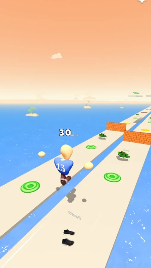 Tap on right time to get your new shoes! New shoes will increase your speed. Jump over the obstacles! Obstacles will decrease your speed. Reach to the finish line before your opponent!