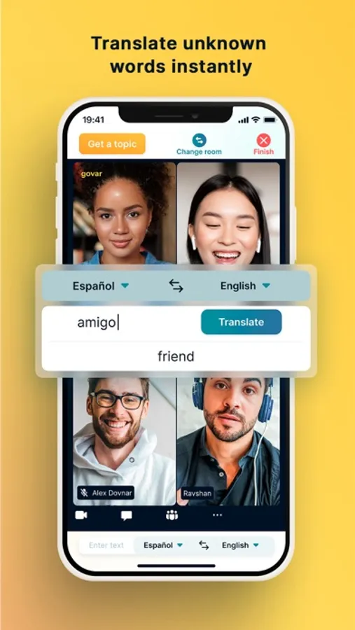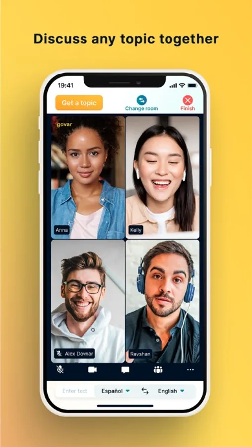 Govar is a free English conversation club and a talking app where you can easily find language partners and talk to users of your level from different countries.