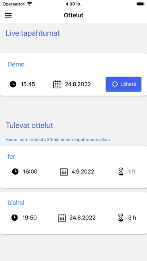 Kirjaudu hallintatunnuksilla, valitse seurasi ottelu ja aloita striimaaminen.