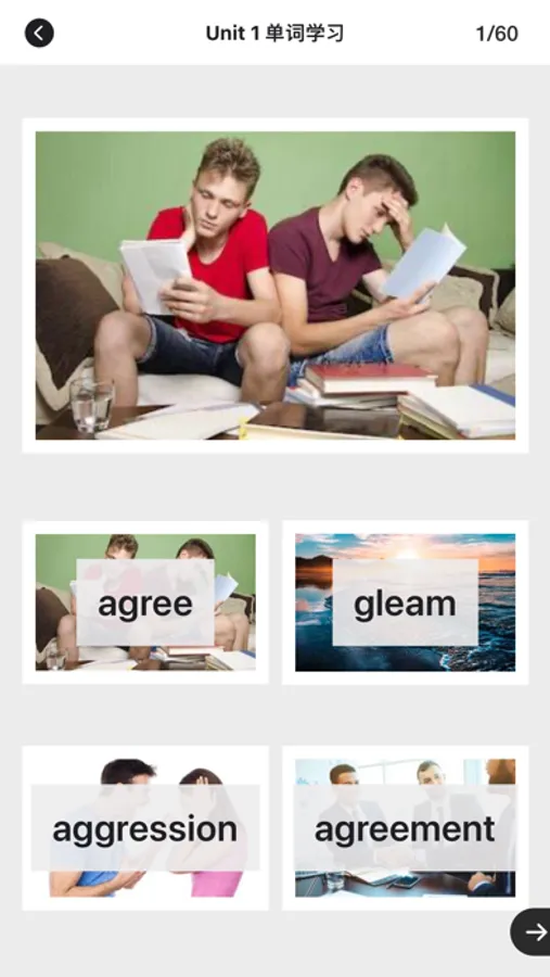 单词学习、快速学习、课文学习、听力、听写、阅读、磨耳朵、单词卡片、模拟测试、中英测试等